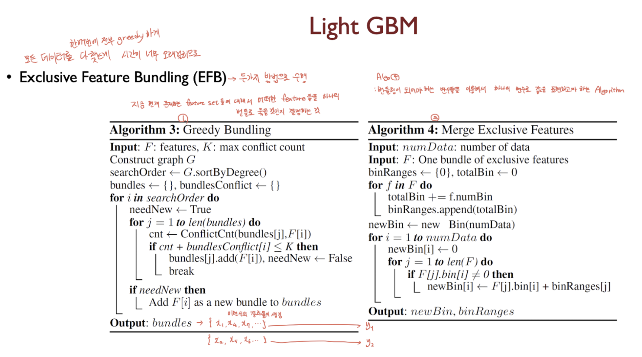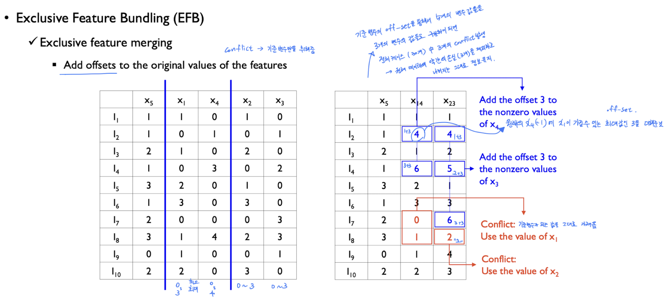 LightGBM에서 (GOSS와 EFB방식을 통해) 번들을 구성, 데이터 feature를 줄여서 학습한다