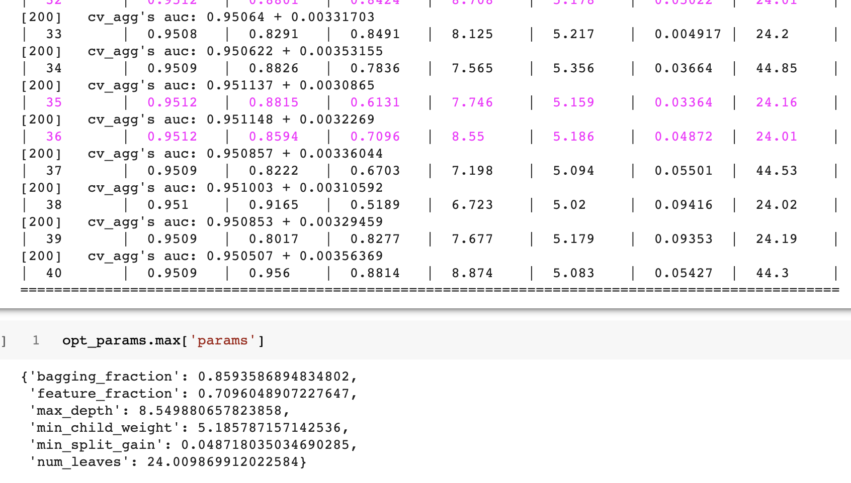 bagging_fraction : 매번 iteration을 돌 때 사용되는 데이터의 일부를 선택하는데 트레이닝 속도를 높이고 과적합을 방지할 때 주로 사용됩니다.