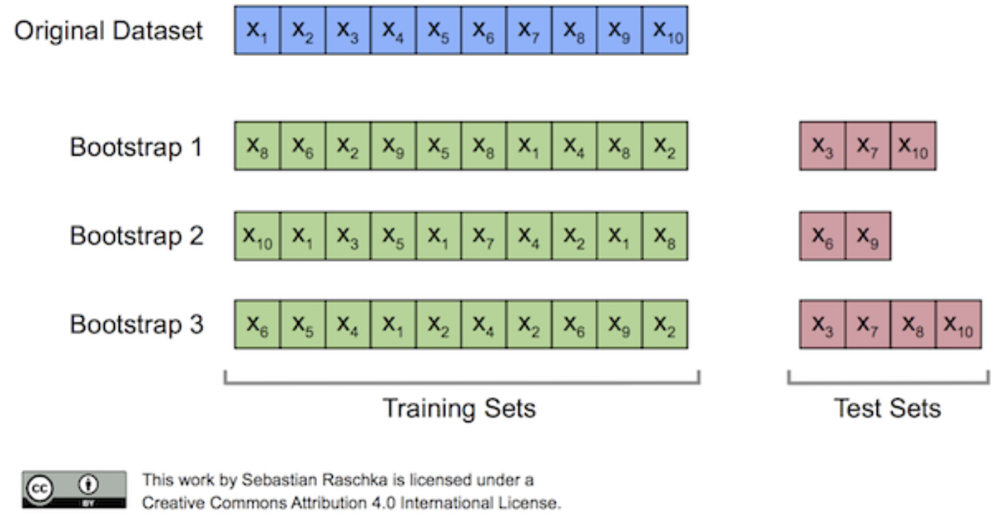 bootstrap = 복원 추출 | method for sampling data points (with or without replacement)
